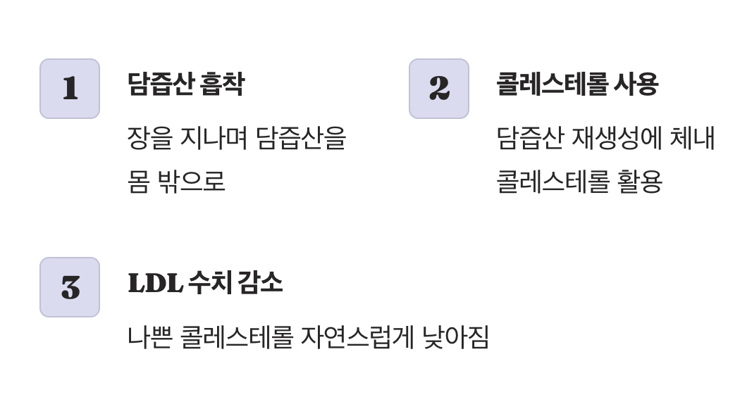 단순히 화장실 문제만 해결해 주는 것이 아닙니다. 이 기특한 식물은 혈관 건강을 지키는 데도 탁월한 능력을 발휘합니다. 끈적해진 젤리 형태의 섬유질이 소장과 대장을 지나가면서 담즙산이라는 물질을 흡착해 몸 밖으로 데리고 나갑니다. 우리 몸은 없어진 담즙산을 다시 만들기 위해 체내에 쌓인 콜레스테롤을 사용하게 됩니다.