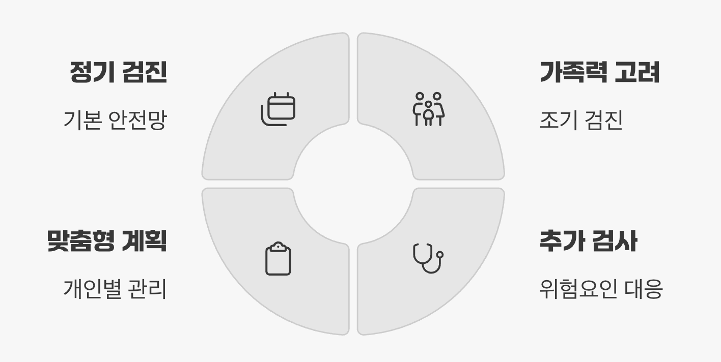 만약 부모님이나 형제 중에 특정 암(대장암, 유방암 등) 가족력이 있다면, 국가 검진 권고 연령보다 조금 더 일찍, 그리고 더 자주 검사를 받는 것이 좋습니다. 또한, 흡연이나 음주 등 위험 요인이 있다면, 검진 주기를 짧게 하거나 복부 초음파, 종양 표지자 혈액 검사 같은 추가적인 정밀 검사를 함께 받는 것을 고려해 볼 수 있습니다. 결국, 내 몸의 위험 요소를 알고, 나에게 맞는 ‘맞춤형 검진 계획’을 세우는 것이 최고의 해결책입니다.