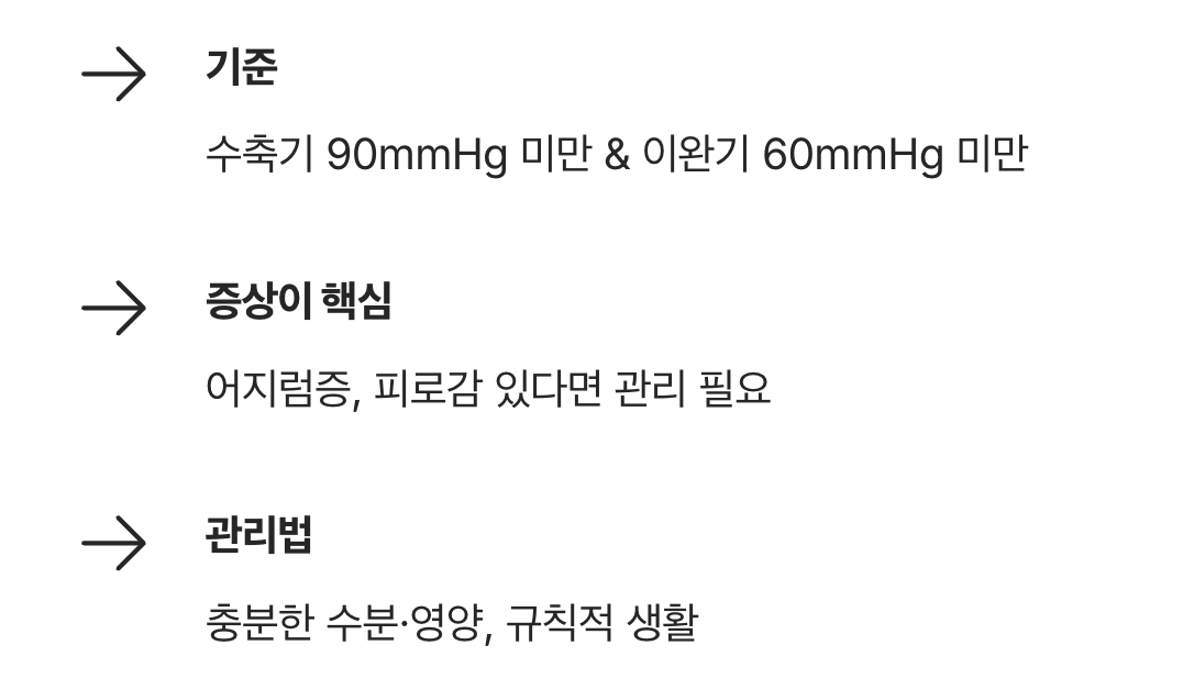 혈압을 쟀는데 90/60mmHg보다 낮게 나와 덜컥 겁을 먹으신 적 있으신가요? 고혈압이 위험하다는 말은 귀에 못이 박이도록 들었는데, 반대로 너무 낮은 수치는 괜찮은 건지 불안한 마음이 드는 것은