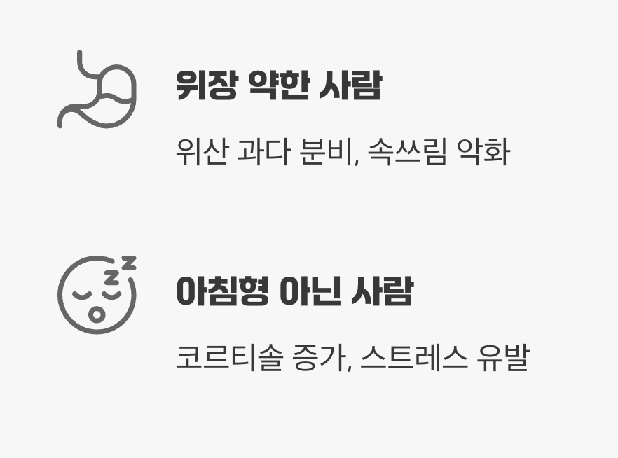 평소 위염이나 역류성 식도염처럼 위장이 예민하다면, 빈속에 하는 운동이 위산을 과도하게 분비시켜 속 쓰림이나 불편함을 악화시킬 수 있습니다. 운동 중 복통을 느끼거나 신물이 올라오는 경험을 했다면, 공복 운동은 당신에게 맞지 않는다는 신호입니다.