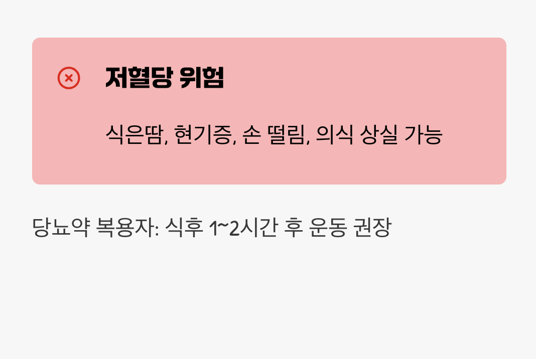 공복 상태에서는 혈당이 이미 낮은 상태인데, 여기에 운동으로 에너지를 추가로 소모하면 혈당이 위험 수준까지 떨어질 수 있습니다. 저혈당 상태가 되면 식은땀, 현기증, 손 떨림 증상이 나타나고, 심한 경우 의식을 잃을 수도 있습니다. 따라서 혈당 조절에 문제가 있는 분이라면, 반드시 식후 1~2시간 뒤에 혈당이 안정된 상태에서 운동하는 것이 안전한 해결책입니다.