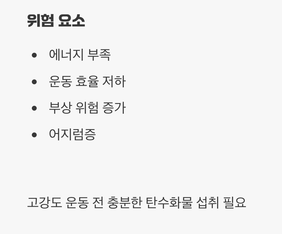 당뇨병 환자는 공복 운동 시 혈당 조절이 어려워 위험하며, 운동 후 영양소 섭취가 없으면 근손실 위험도 있으니 주의가 필요합니다.