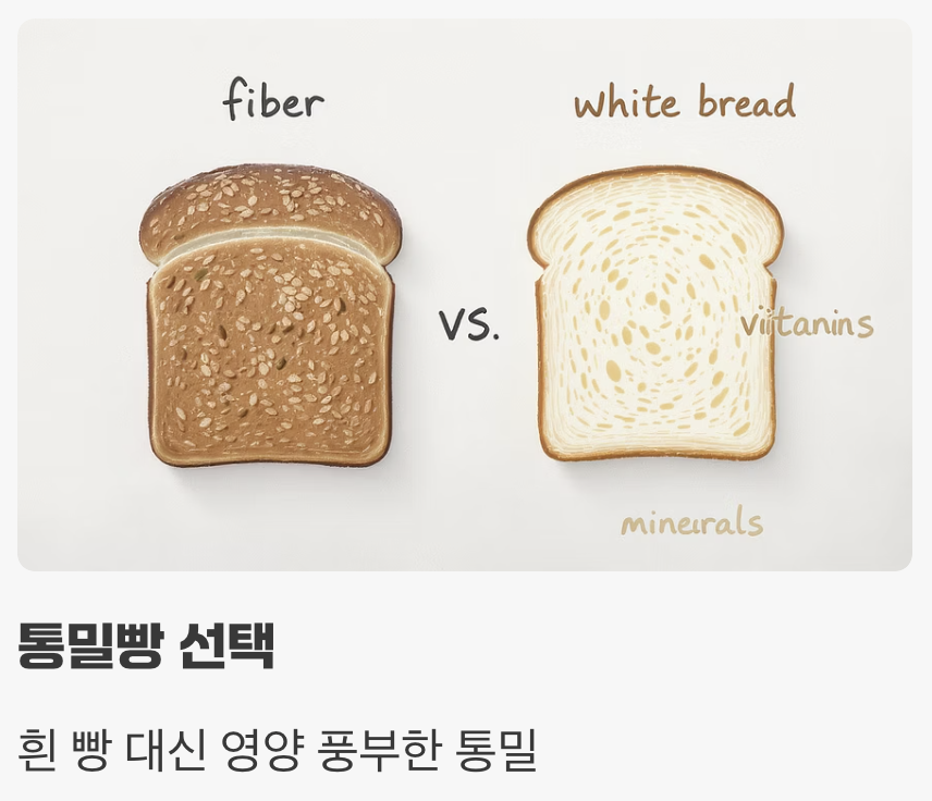 예를 들어, 부드러운 흰 빵 대신 거칠지만 영양이 풍부한 통밀빵을 선택하고, 흰쌀밥에 현미나 귀리를 섞어 먹는 것입니다. 빵이나 면을 완전히 끊는 극단적인 방법 대신, 가공된 밀가루 음식의 섭취 횟수를 줄이고, 그 자리를 다채로운 채소와 건강한 단백질로 채우는 것이야말로, 모두에게 이로운 지속 가능한 건강 관리법입니다.