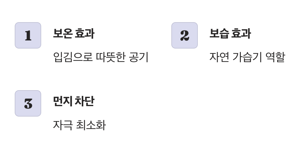 마스크는 남에게 감기를 옮기지 않기 위해서도 쓰지만, 나 자신의 호흡기를 보호하는 최고의 방패입니다. 마스크를 쓰면 내 입김이 안에 머물면서 자연스럽게 따뜻하고 습한 공기를 마시게 됩니다. 차갑고 건조한 외부 공기가 직접 폐로 들어오는 것을 막아주어 자극을 최소화할 수 있습니다.