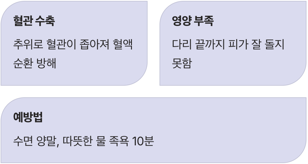 차가운 기온으로 인한 혈액순환 방해