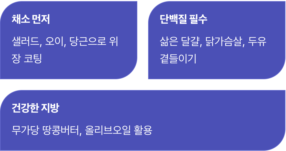 아무리 좋은 빵이라도 빵만 먹으면 영양 불균형이 오고 혈당이 오르기 쉽습니다. 빵을 먹을 때는 반드시 '채소'와 '단백질'을 곁들여야 합니다. 샐러드나 오이, 당근 스틱을 먼저 먹어서 식이섬유로 위장을 코팅해 주세요. 그리고 삶은 달걀이나 닭가슴살, 두유를 함께 드세요.