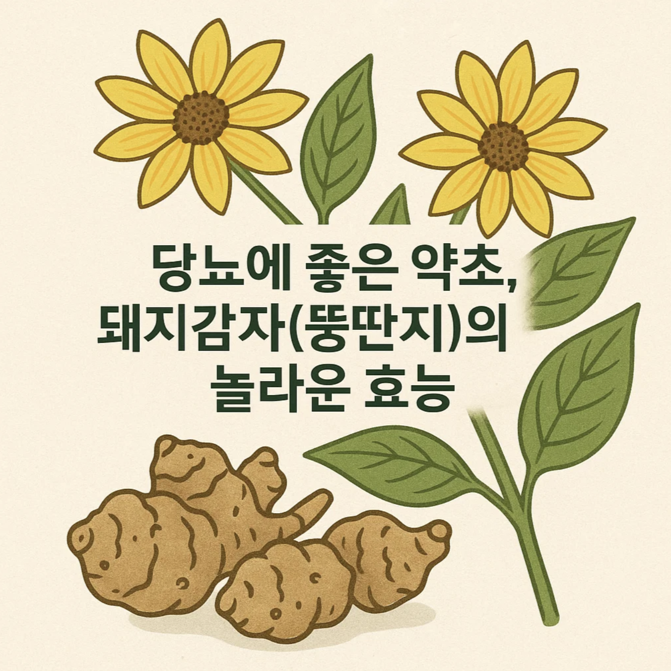 돼지감자는 저칼로리로 혈당 급상승을 막고 장내 환경을 개선해 당뇨 관리에 도움이 되는 식품입니다. - (ENG)돼지감자는 정말로 당뇨에 좋은 음식일까? 돼지감자 효능에 대해서 알아보겠습니다!