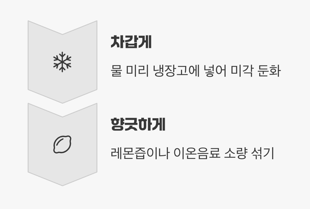 장 정결제의 역한 맛을 줄이는 가장 기본적이면서도 효과적인 방법은 바로 '온도'와 '향'을 이용하는 것입니다. 미지근한 약은 특유의 맛과 향이 더 강하게 느껴져 마시기 힘듭니다.