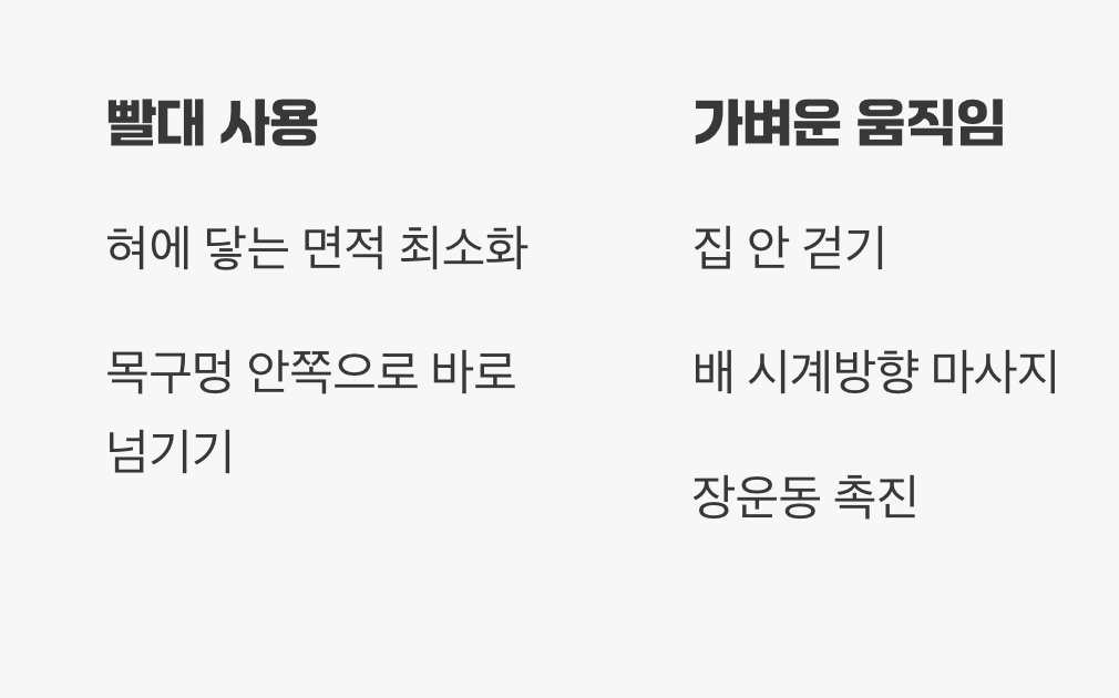 빨대를 이용해 약을 마시면, 액체가 혀에 닿는 면적을 최소화하여 맛을 덜 느끼게 하고, 목구멍 안쪽으로 바로 넘길 수 있어 훨씬 수월합니다. 한 컵을 마신 뒤에는 가만히 앉아있기보다, 집 안을 가볍게 걸어 다니거나 배를 시계 방향으로 부드럽게 마사지해 주세요. 가벼운 움직임은 장운동을 촉진하여 약이 아래로 빨리 내려가도록 도와줍니다.