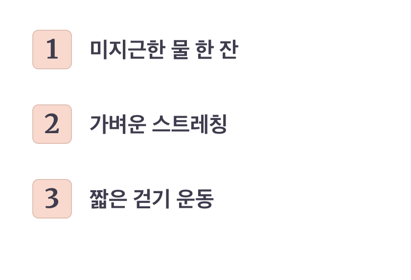 아침 장 마사지의 효과를 극대화하고 싶다면, 한 가지 습관을 더하는 것이 좋습니다. 마사지를 마친 뒤, 자리에서 일어나자마자 미지근한 물 한 잔을 마시는 것입니다. 밤새 비어있던 위장에 물이 들어가면, 이는 곧장 장에 신호를 보내 연동 운동을 활발하게 만드는 기폭제가 됩니다.