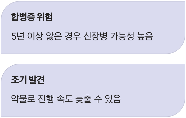 A. 원인 질환에 따라 다릅니다. 단순한 염증이나 일시적인 문제라면 치료 후 금방 사라집니다. 만성 콩팥병이나 당뇨 합병증이라면 완치보다는 관리에 중점을 둡니다. 혈압과 혈당을 조절하고 약물 치료를 병행하면 단백뇨 양이 줄어들면서 거품 증상도 훨씬 호전될 수 있습니다.