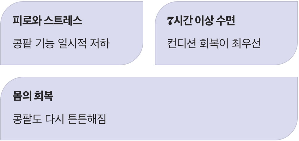 이럴 때 필요한 것은 영양제보다 '잠'입니다. 몸을 혹사시키는 격렬한 운동을 멈추고, 하루 7시간 이상 푹 자면서 컨디션을 회복해야 합니다. 몸의 피로가 풀리면 콩팥도 다시 튼튼해져서 노폐물만 쏙쏙 골라내고 영양분은 몸에 남기는 본래의 역할을 훌륭하게 수행할 것입니다.
