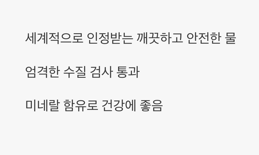 우선 한 가지 사실은 명확히 해야 합니다. 각 지역의 정수장에서 처리되어 나오는 수돗물 원수(原水)는 세계적으로도 인정받는 매우 깨끗하고 안전한 물입니다. 수많은 항목의 엄격한 수질 검사를 통과한, 그야말로 ‘특급수’ 품질을 자랑하죠. 미네랄도 적절히 함유되어 있어 건강에도 좋습니다.