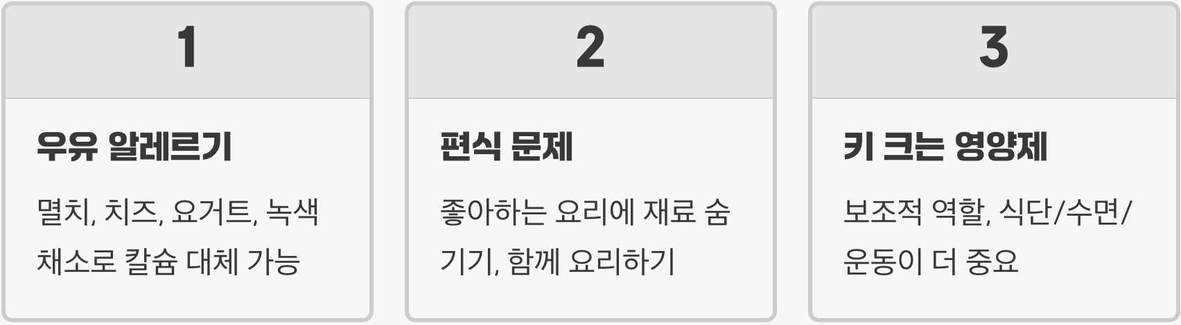 Q. 저희 아이는 우유 알레르기가 있는데, 키가 안 클까 봐 걱정돼요.