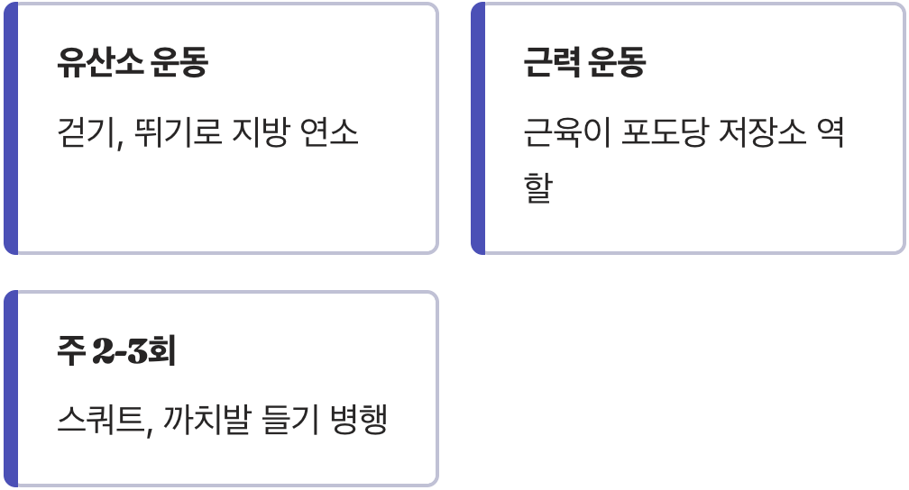 지방을 태우는 데는 걷기나 뛰기 같은 유산소 활동이 좋지만, 장기적으로 혈당을 잡으려면 근육이 있어야 합니다. 근육은 우리 몸에서 가장 큰 '설탕 저장소' 역할을 합니다. 허벅지나 엉덩이 근육이 튼튼하면 식사 후 들어오는 포도당을 스펀지처럼 흡수해서 혈당이 튀는 것을 막아줍니다.