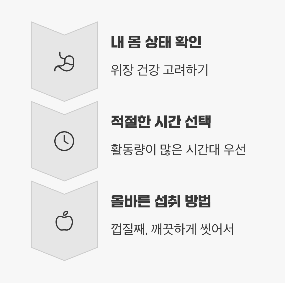 위장이 튼튼하고 건강한 사람이라면 아침이든 저녁이든 언제 먹어도 좋은 ‘금사과’입니다. 반면, 위장이 약하고 예민하다면 활동량이 많은 아침이나 낮에 먹는 것이 더 편안한 선택이 될 수 있습니다. 가장 좋은 섭취 시간은, 내가 먹고 싶고, 먹었을 때 속이 편안한 바로 그 시간입니다.
