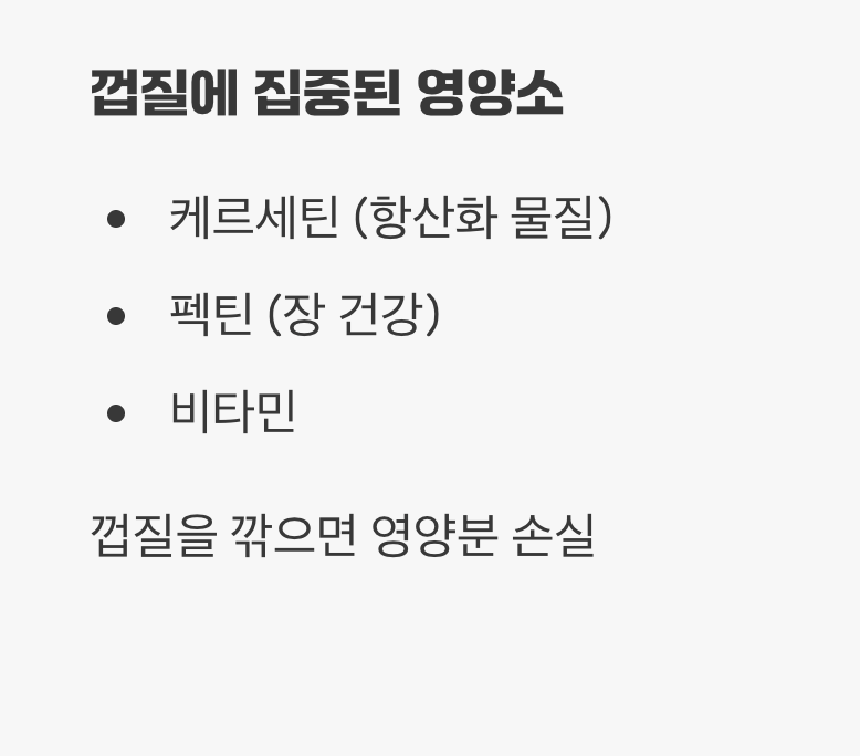 사과를 먹는 시간보다 훨씬 더 중요한 것은 바로 ‘어떻게’ 먹느냐입니다. 사과의 놀라운 효능을 제대로 누리고 싶다면, 반드시 껍질째 먹어야 합니다. 사과의 핵심 영양소 대부분이 바로 이 껍질과 껍질 바로 밑 부분에 집중되어 있기 때문입니다.