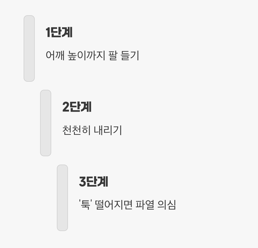 결정적 단서 1: 팔을 옆으로 들 때 '특정 구간' 통증