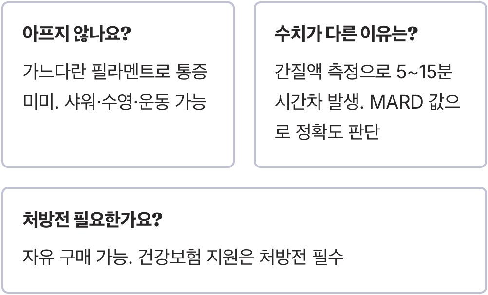 Q. 연속혈당측정기, 아프지 않나요? 샤워나 운동은 괜찮나요?