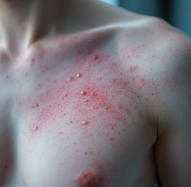 잠복기가 끝나면, 드디어 본격적인 고통의 시간인 ‘급성기’가 시작됩니다. 이 시기에는 미치도록 가려운 느낌과 함께 피부가 붉게 달아오르고 퉁퉁 붓기 시작합니다. 그리고 곧이어 좁쌀 같은 작은 물집(수포)들이 올라오면서, 증상은 최고조에 달합니다.