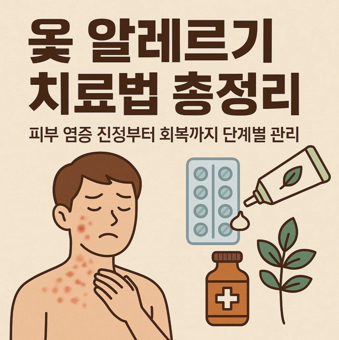 자가 치료 후 증상 악화 시 병원 방문해 전문적인 약물치료(경구 스테로이드, 항히스타민제 등)를 받는 것이 권장됩니다.