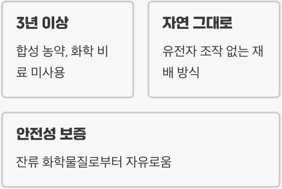우선 '유기농'이 무엇인지 정확히 알아야 합니다. 유기농은 단순히 농약을 덜 쳤다는 의미가 아닙니다. 최소 3년 이상 합성 농약과 화학 비료를 일절 사용하지 않은 건강한 땅에서, 유전자 조작 없이 자연 그대로의 방식으로 재배한 농산물에만 부여되는 까다로운 인증입니다. 즉, 인공적인 화학 물질의 힘을 빌리지 않고 자연의 힘으로만 키워냈다는 '과정'에 대한 약속입니다.