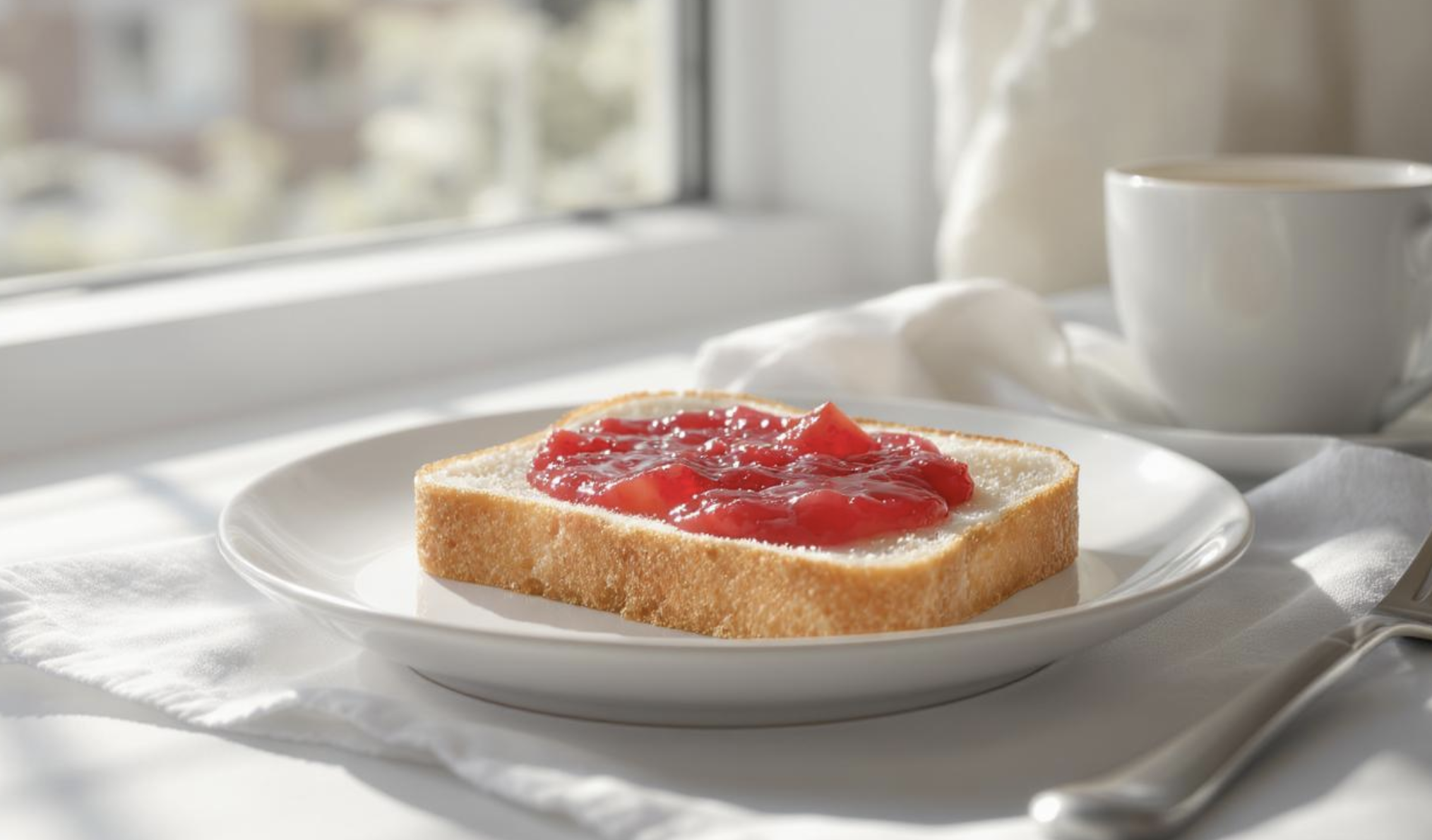 갓 구운 부드러운 식빵에 달콤한 딸기잼을 듬뿍 발라 먹는 상상, 즐거우신가요? 안타깝게도 이 조합 역시 우리 몸에는 큰 부담을 줍니다. 흰 빵은 정제된 밀가루로 만들어져 영양가는 거의 없고 혈당을 빠르게 올리는 주범입니다. 여기에 설탕 덩어리인 잼까지 더해지면 그야말로 '설탕 폭탄'이 됩니다.