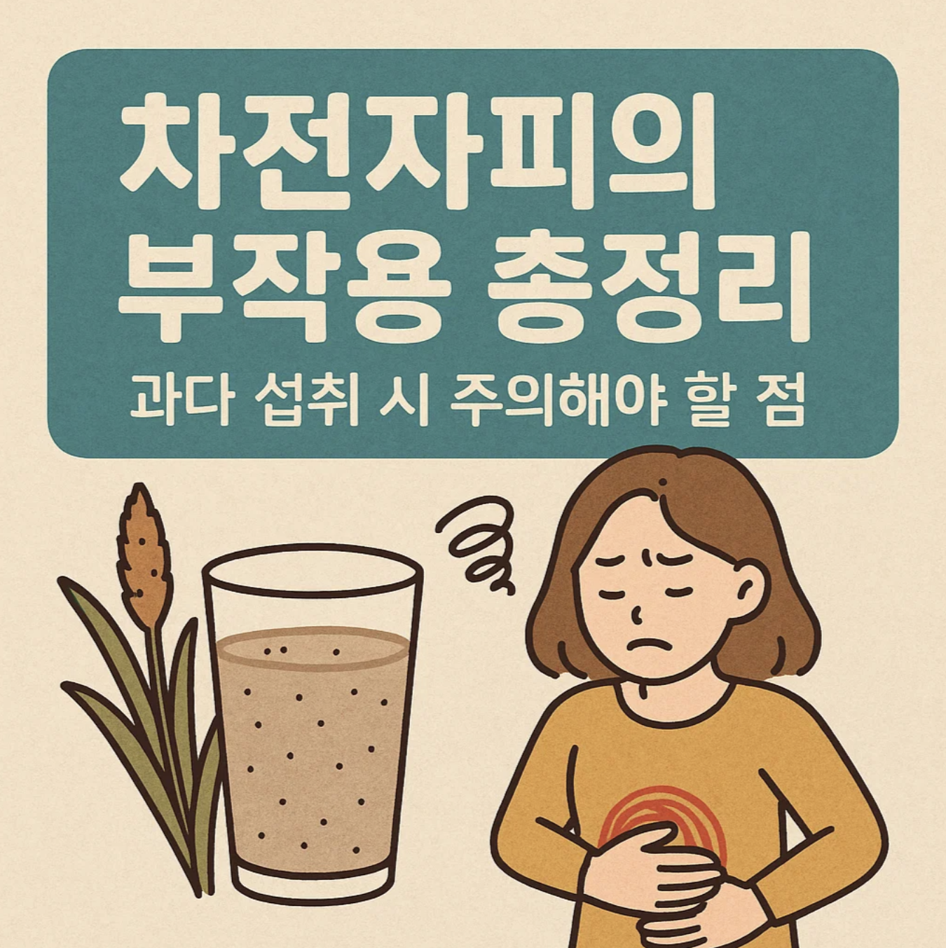 차전자피는 수분 섭취가 부족할 경우 장 폐색 위험이 있으니 반드시 충분한 물과 함께 먹어야 하며, 알레르기 반응도 생길 수 있습니다.