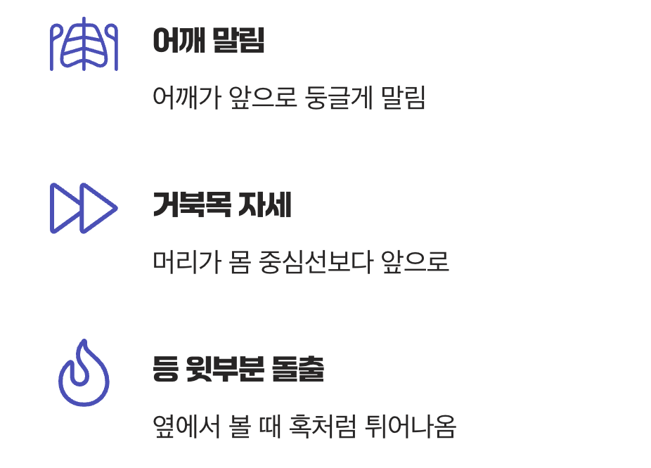 어깨가 앞으로 말리고 등이 둥글게 보여요