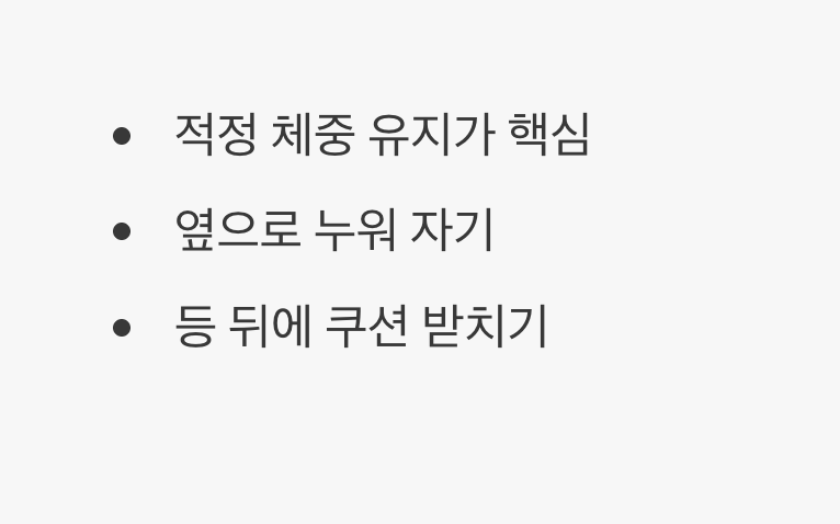 또한, 오늘 밤 당장 실천할 수 있는 아주 간단한 방법이 있습니다. 바로 ‘옆으로 누워 자기’입니다. 똑바로 누워 자면, 중력에 의해 혀와 목젖이 뒤로 밀려 기도를 막기 쉽습니다. 옆으로 돌아눕는 자세만으로도 기도가 훨씬 넓게 확보되어 호흡이 한결 편안해지는 것을 느낄 수 있습니다. 등 뒤에 쿠션을 받쳐, 자는 동안 자연스럽게 옆으로 누운 자세를 유지하도록 돕는 것도 좋은 방법입니다.