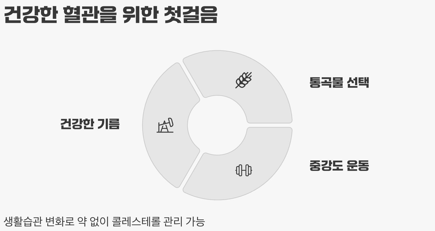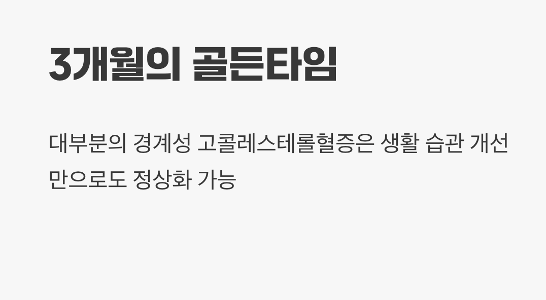 물론 유전적인 요인이 크거나, 다른 질환과의 관련성 때문에 반드시 약물 치료가 필요한 경우도 있습니다. 하지만 대부분의 경계성 고콜레스테롤혈증은 위에서 제시한 세 가지 생활 습관 개선만으로도 충분히 정상 범위로 되돌릴 수 있습니다.