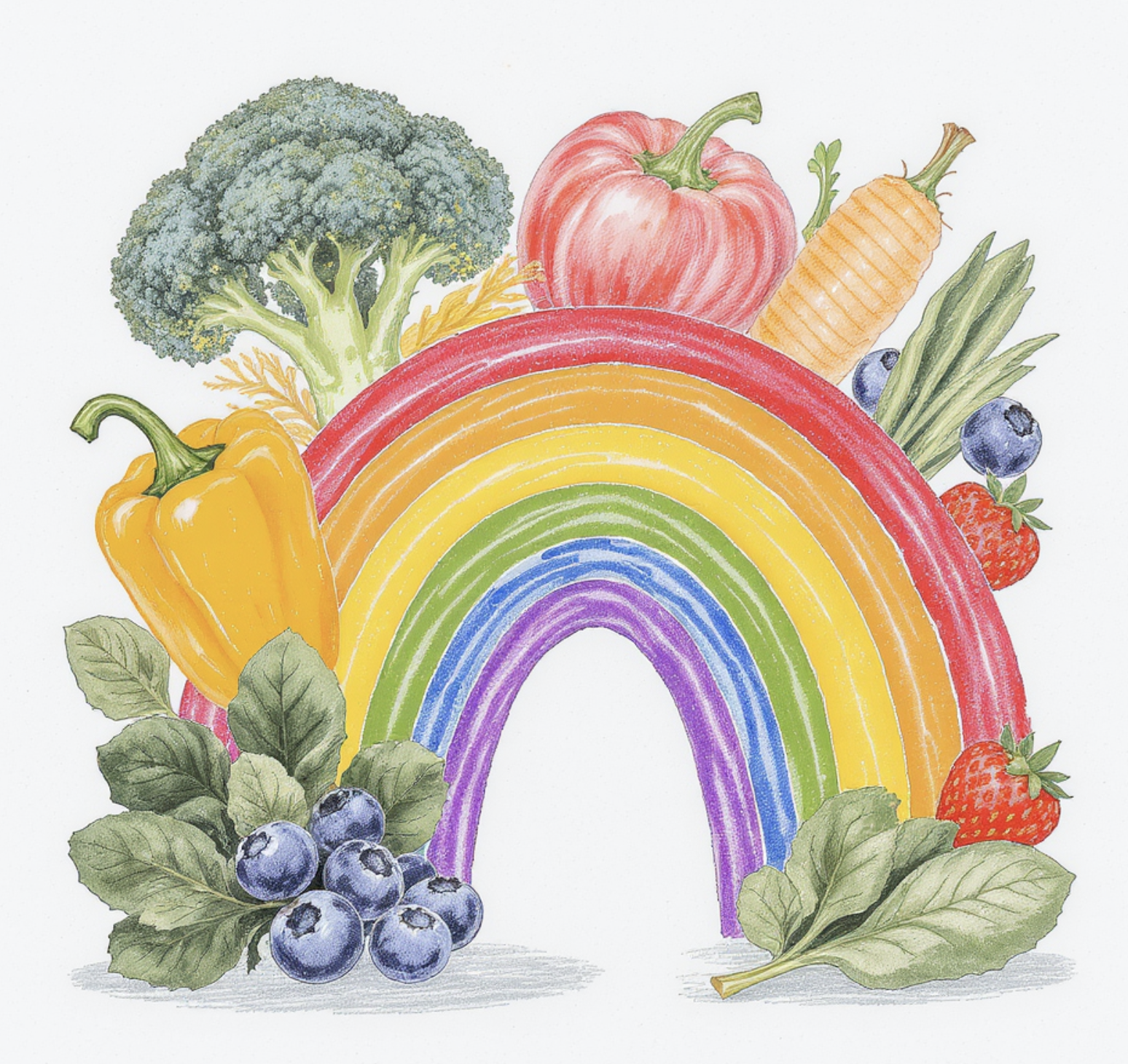 선명하고 다채로운 색깔을 가진 채소와 과일에는 우리 몸의 세포를 보호하는 ‘항산화 물질’이 가득 들어있습니다. 이 항산화 성분들은 염증을 유발하는 활성산소를 제거하여, 우리 몸에 튼튼한 ‘무지개 방패’를 만들어 줍니다.