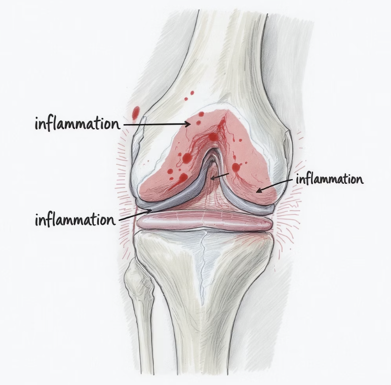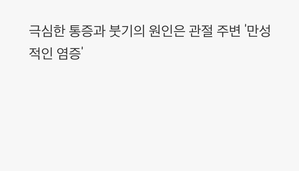 퇴행성 관절염은 뼈와 뼈 사이에서 쿠션 역할을 하던 연골이 오랜 시간 동안 닳아 없어지면서 생기는 질환입니다. 하지만 많은 환자분이 느끼는 극심한 통증과 붓기는, 단순히 연골이 없어서라기보다 관절 주변 조직에 생긴 ‘만성적인 염증’ 때문인 경우가 훨씬 많습니다.