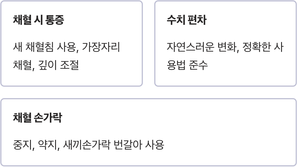 Q. 채혈할 때마다 너무 아파요. 제가 뭘 잘못하고 있나요?
