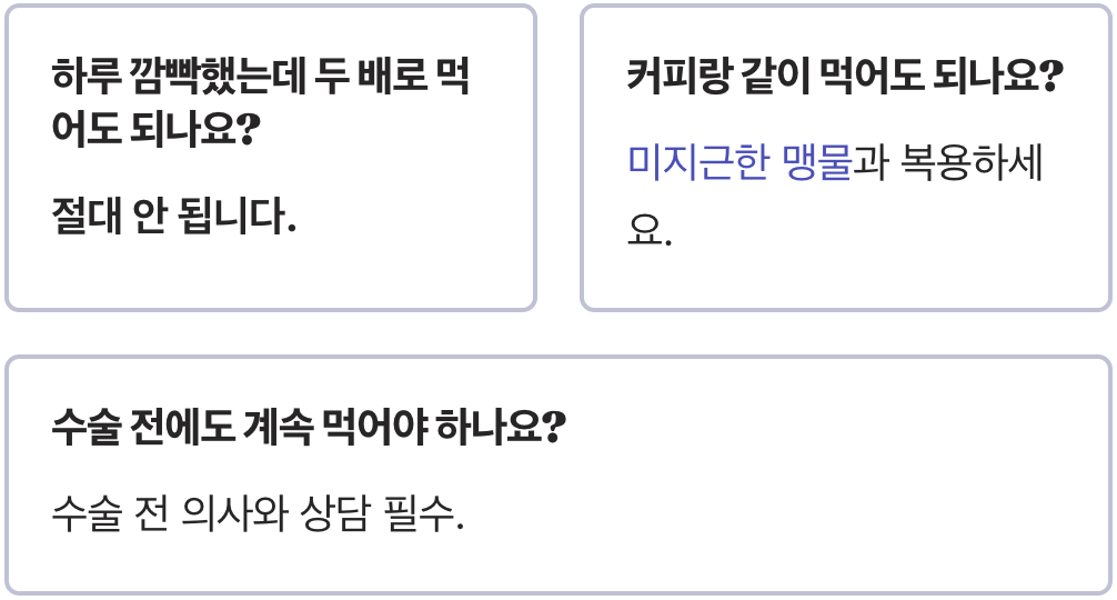 Q. 하루 깜빡하고 안 먹었는데, 다음날 두 배로 먹어도 되나요?