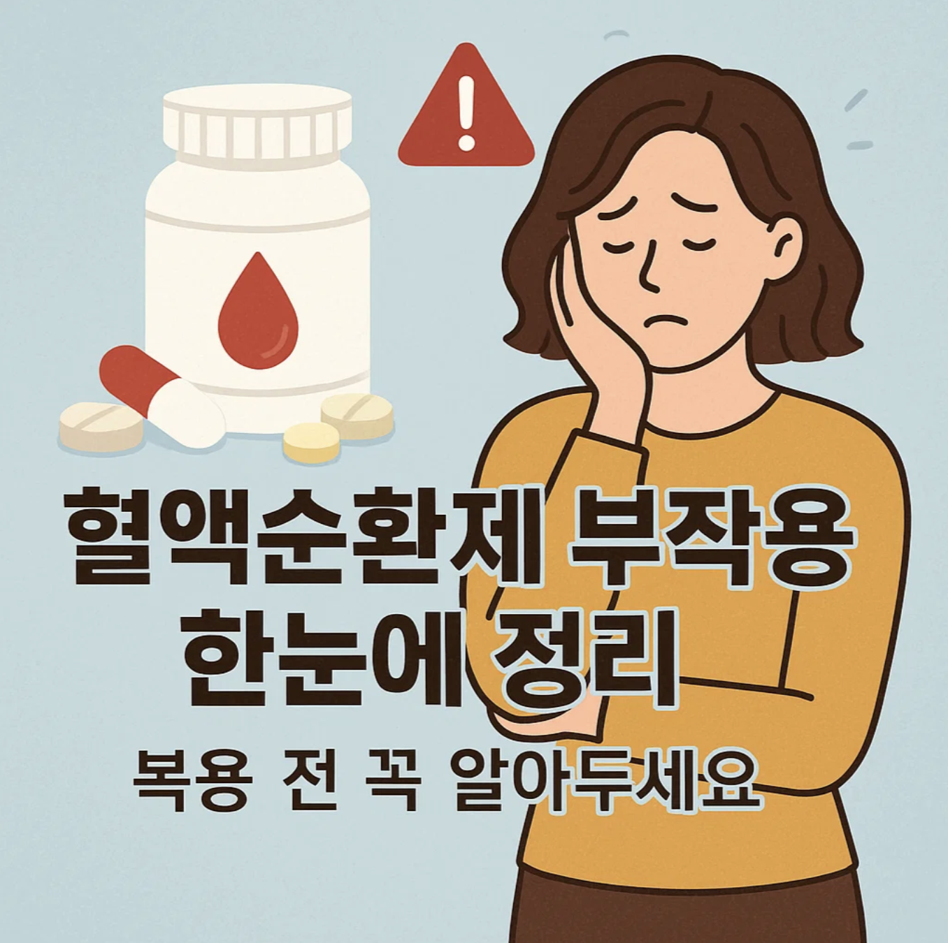 혈액순환제는 가려움, 발진, 위장장애 등 부작용이 있을 수 있으니 복용 전 상담과 주의가 필요합니다.