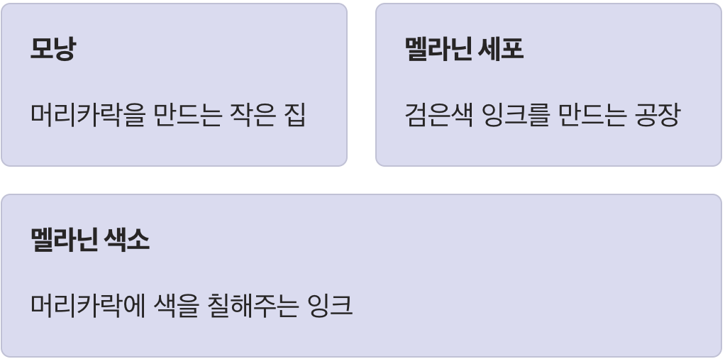 흰머리와 새치의 차이를 이해하려면, 먼저 우리 머리카락이 어떻게 검은색을 띠게 되는지 알아야 합니다. 우리 두피 속에는 머리카락을 만드는 ‘모낭’이라는 작은 집이 있고, 그 집 안에는 ‘멜라닌 세포’라는 아주 중요한 색깔 공장이 있습니다. 이 공장에서 ‘멜라닌 색소’라는 검은색 잉크를 만들어내어 머리카락에 쓱쓱 칠해주기 때문에 우리는 검은 머리를 갖게 되는 것이죠.