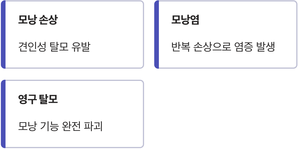 그렇다면 이제 안심하고 마음껏 뽑아도 될까요? 절대 아닙니다. 이제부터가 진짜 중요한 이야기입니다. 머리카락을 억지로 뽑아내는 행위는 그 머리카락을 만들고 있던 집, 즉 ‘모낭’에 아주 큰 상처와 스트레스를 줍니다. 견인성 탈모의 원인이 될 수 있는 아주 위험한 습관이죠.