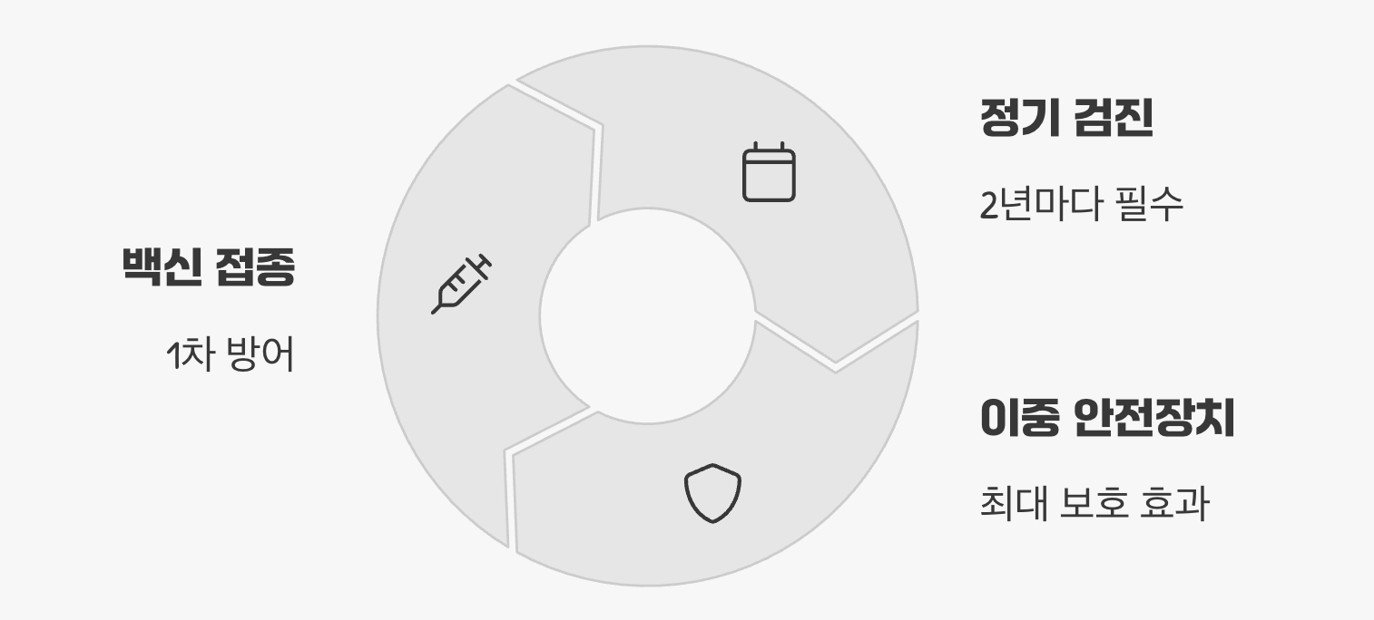 따라서 예방 접종과 함께, 2년에 한 번씩 국가에서 지원하는 자궁경부암 정기 검진을 꾸준히 받는 것이 매우 중요합니다. 백신으로 1차 방어를 하고, 정기 검진으로 2차 방어를 하는 이중 안전장치를 갖추었을 때, 비로소 우리는 자궁경부암의 위협으로부터 가장 안전하게 우리 자신을 지킬 수 있습니다.