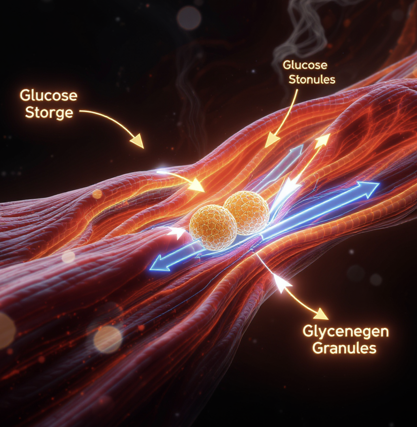 근육이 왜 당뇨병과 관련이 있을까요? 바로 근육이 우리 몸에서 가장 큰 ‘포도당 저장 탱크’ 역할을 하기 때문입니다. 우리가 음식을 통해 섭취한 포도당의 약 70%는 바로 이 근육에 저장됩니다. 근육량이 충분하면, 식사 후 혈당이 급격히 오르더라도 이 포도당을 넉넉하게 저장하여 혈당을 안정적으로 유지할 수 있습니다.