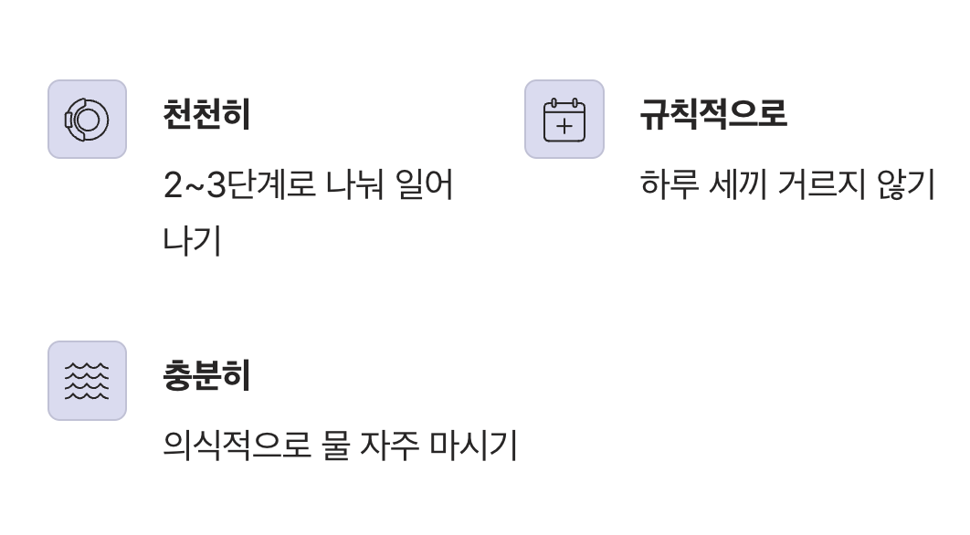 다행히도, 심각한 질환이 원인이 아닌 대부분의 노년기 저혈압은 생활 속 작은 습관의 변화만으로도 충분히 관리하고 예방할 수 있습니다. 가장 중요한 것은 ‘천천히, 규칙적으로, 충분히’라는 세 가지 원칙을 기억하는 것입니다.