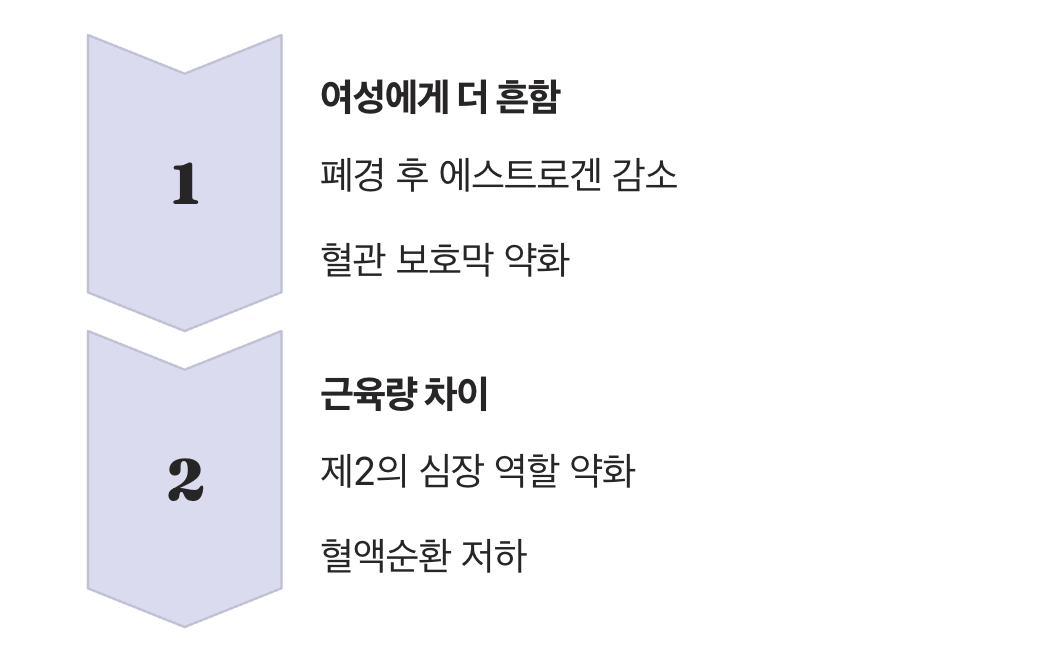 일반적으로 저혈압은 남성보다 여성에게서 더 흔하게 나타나는 경향이 있습니다. 특히 여성은 폐경기를 거치면서 여성호르몬(에스트로겐)의 분비가 급격히 줄어드는데, 이 호르몬은 혈관을 보호하고 탄력성을 유지하는 중요한 역할을 합니다. 호르몬의 보호막이 사라지면서 혈압 조절 능력이 불안정해지고, 저혈압 증상을 더 쉽게 느낄 수 있습니다.