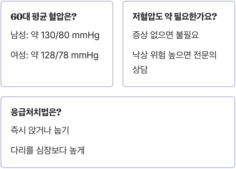 “나이가 드니 기운도 없고, 앉았다 일어서면 눈앞이 핑 도네.” 저희 어머니께서 부쩍 이런 말씀을 자주 하셨을 때, 저는 으레 ‘나이 탓이겠거니’ 하고 대수롭지 않게 넘겼습니다. 하지만 혈압을 재어보니, 늘 정상 범위에 있던 수치가 90/60mmHg 언저리에서 맴도는 것을 보고 덜컥 걱정이 되기 시작했습니다.
