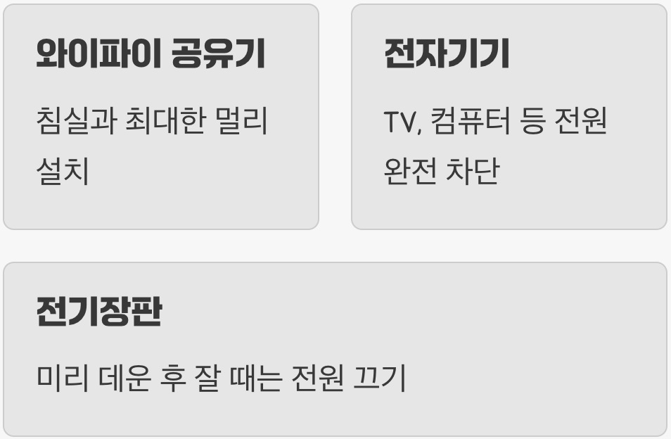 스마트폰뿐만 아니라 침실에 있는 다른 전자기기들도 숙면의 방해꾼이 될 수 있습니다. 특히 와이파이 공유기는 24시간 내내 강력한 신호를 내뿜기 때문에 침실이나 침실 바로 옆에 두는 것은 피하는 것이 좋습니다. 거실 등 잠자는 공간과 최대한 떨어진 곳에 설치하는 것이 현명합니다.